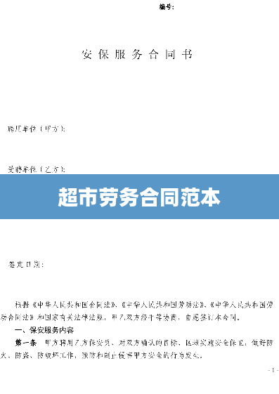 2024-12-05X X X X 超市劳务合同 甲方:XXXXXXXX 电话号码:XXXXXXXXXXX 乙方: 电话号码: ? 甲、乙双方根据《中华人民共......